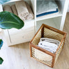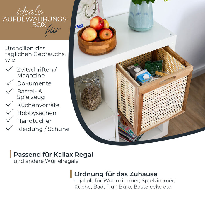 Der HMF Aufbewahrungskorb aus Akazienholz mit Wiener Geflecht aus Rattan ist ideal zur Aufbewahrung verschiedener Gegenstände im Alltag.
