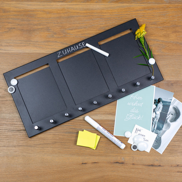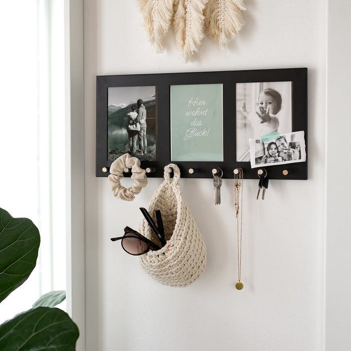 Schlüsselbrett mit 2 Bilderrahmen Hochformat, 6 Haken, HMF 10830-02, 29 x 20 x 4 cm, Schwarz