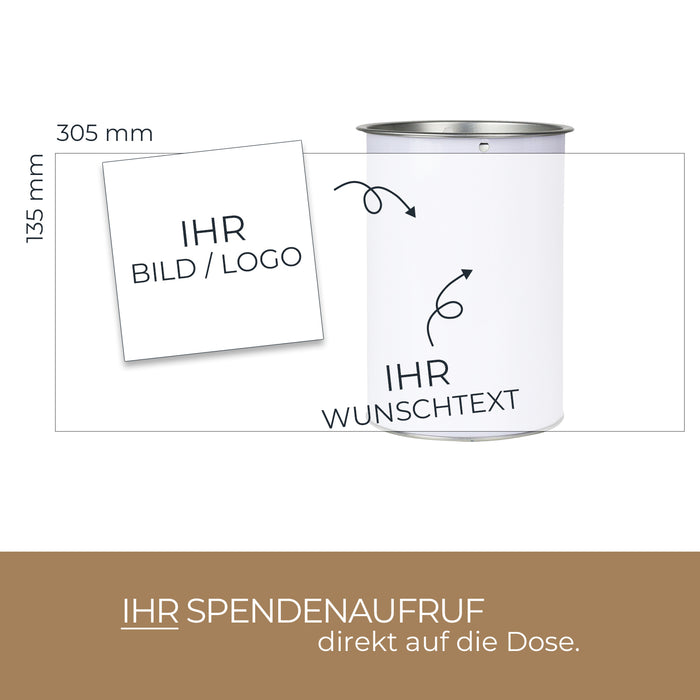 Sammelbüchse von HMF aus Blech mit lackiertem Außenmantel mit Ihrem individuellem Wunschmotiv ist ideal für Spendensammlungen.
